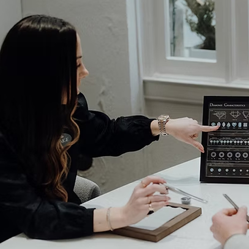 Sarah, the current President and Owner of Colonial Jewelers, and Jeff, her father and predecessor, are both GIA Graduate Gemologists, meaning they’re qualified to hand-select only the finest of Diamonds for our store. Our sales manager, Jill, is also a Graduate Gemologist and has helped to ensure our sales team is fully trained on the 4 C’s, as well as other extensive Diamond education, and are ready to share some of their knowledge with you and answer any questions that you may have.